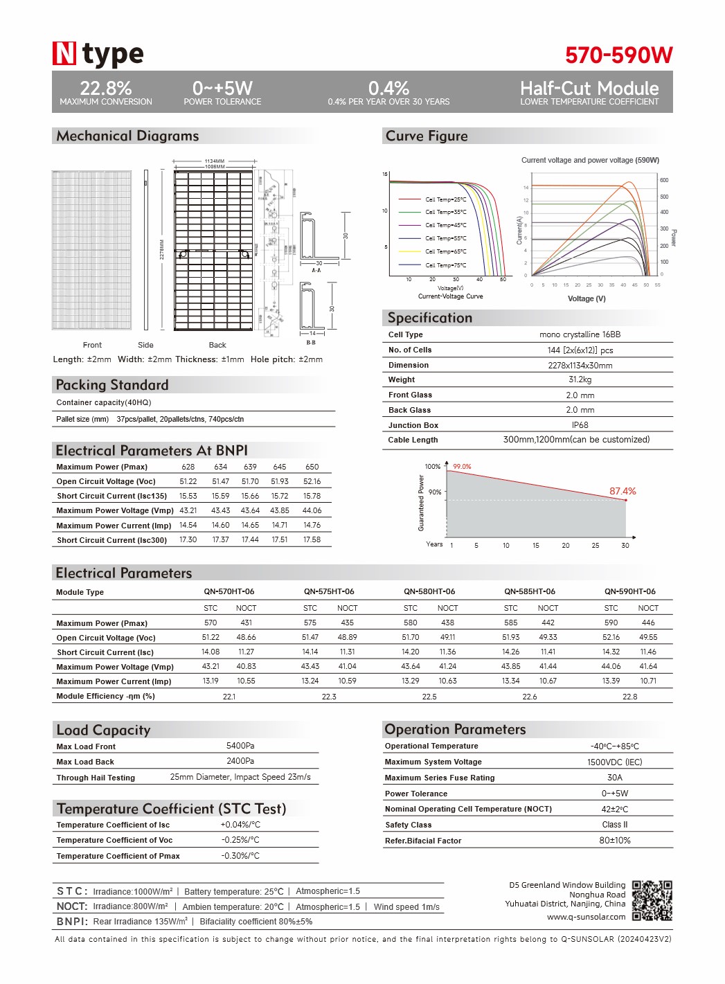 2 – 8 Paineis Fotovoltaico Q-Sun 590w Bi-faciais N-Type Topcon